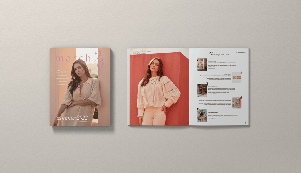 For March23, I worked in-house for nearly three years within the Social Media & Marketing team. I supported the brand throughout the full marketing process (from concept development to execution), designing magazines and lookbooks, editing video content for social media, and developing advertising assets.