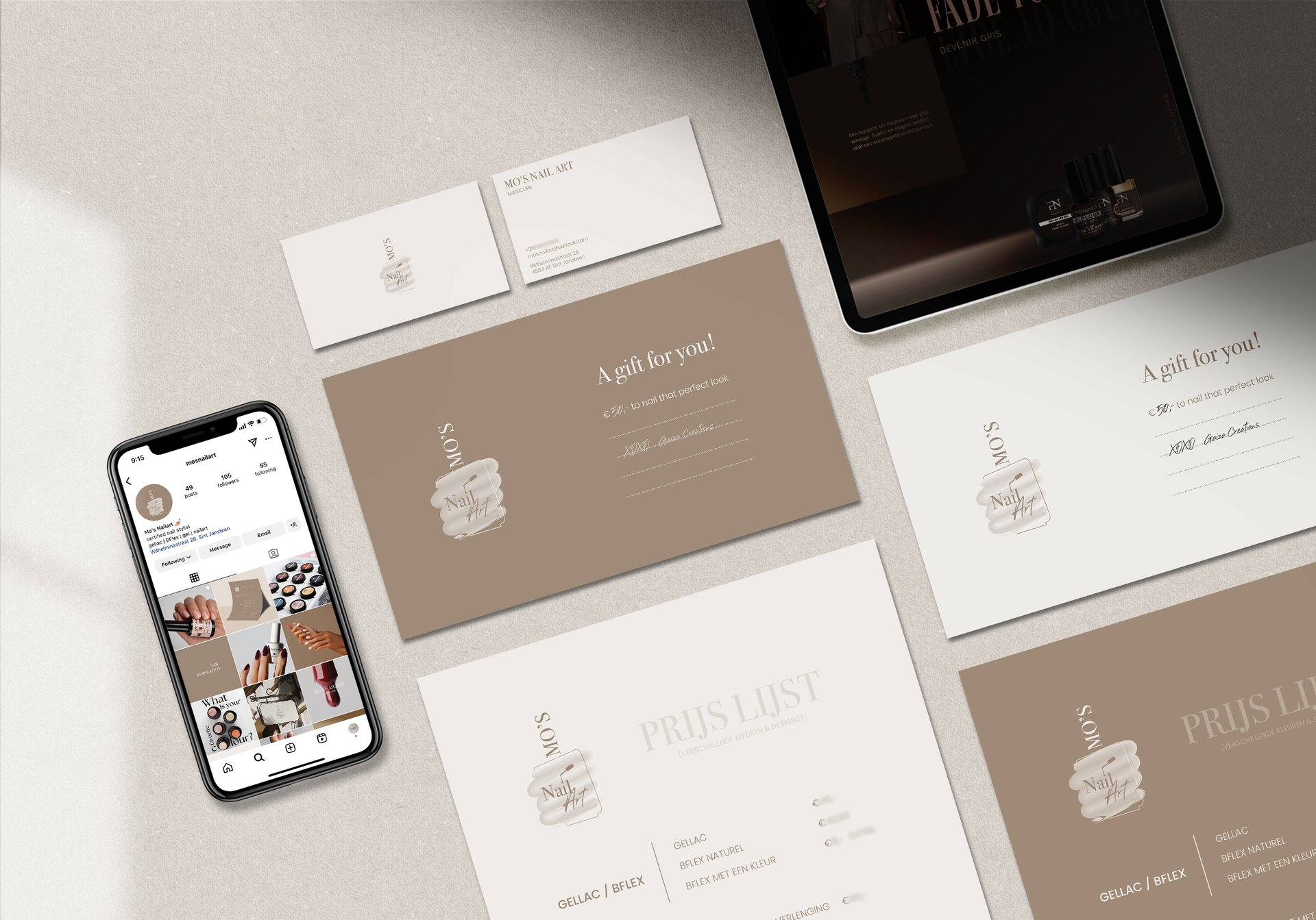 Rooted in Monique’s passion for nail art, Mo’s Nailart is a salon where care, detail, and calm come together. The brand identity reflects this personal approach, combining a soft, feminine feel with a clean, modern aesthetic.